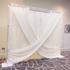 - Layered Elegance: Our Style 3 backdrop features a double-layer design, similar to Styles 1 and 2. The back layer consists of a robust, tried-and-true 3m white drape, made from a thicker backing material to ensure durability while maintaining a refined look.