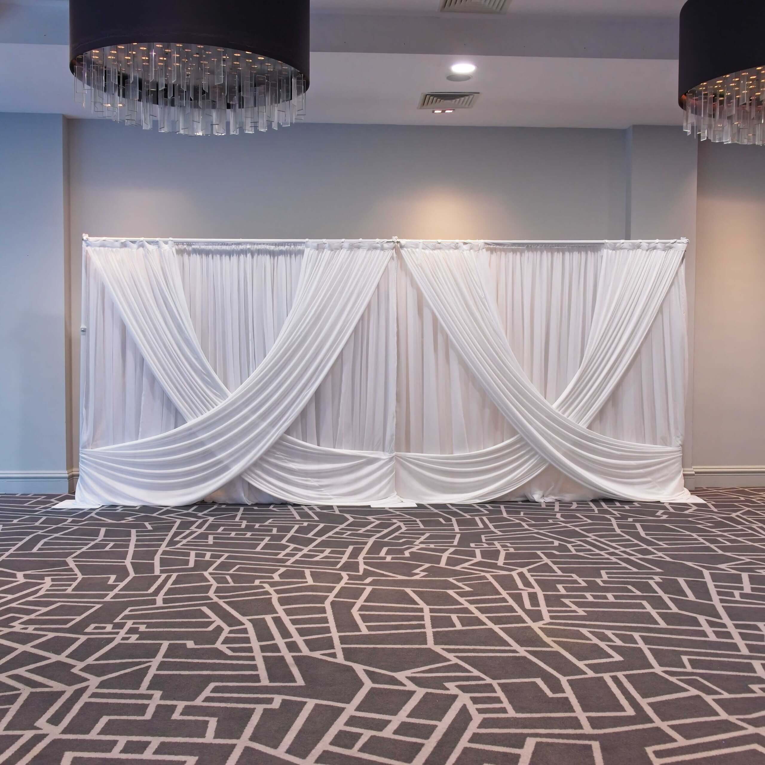 We offer a variety of styles and sizes to suit your specific requirements. Whether you need a backdrop of 3m, 6m, or 9m in width, each option can reach a height of up to 3m. Our fully adjustable pipe and drape frames allow us to tailor the height to fit your unique vision, ensuring perfection for your event.