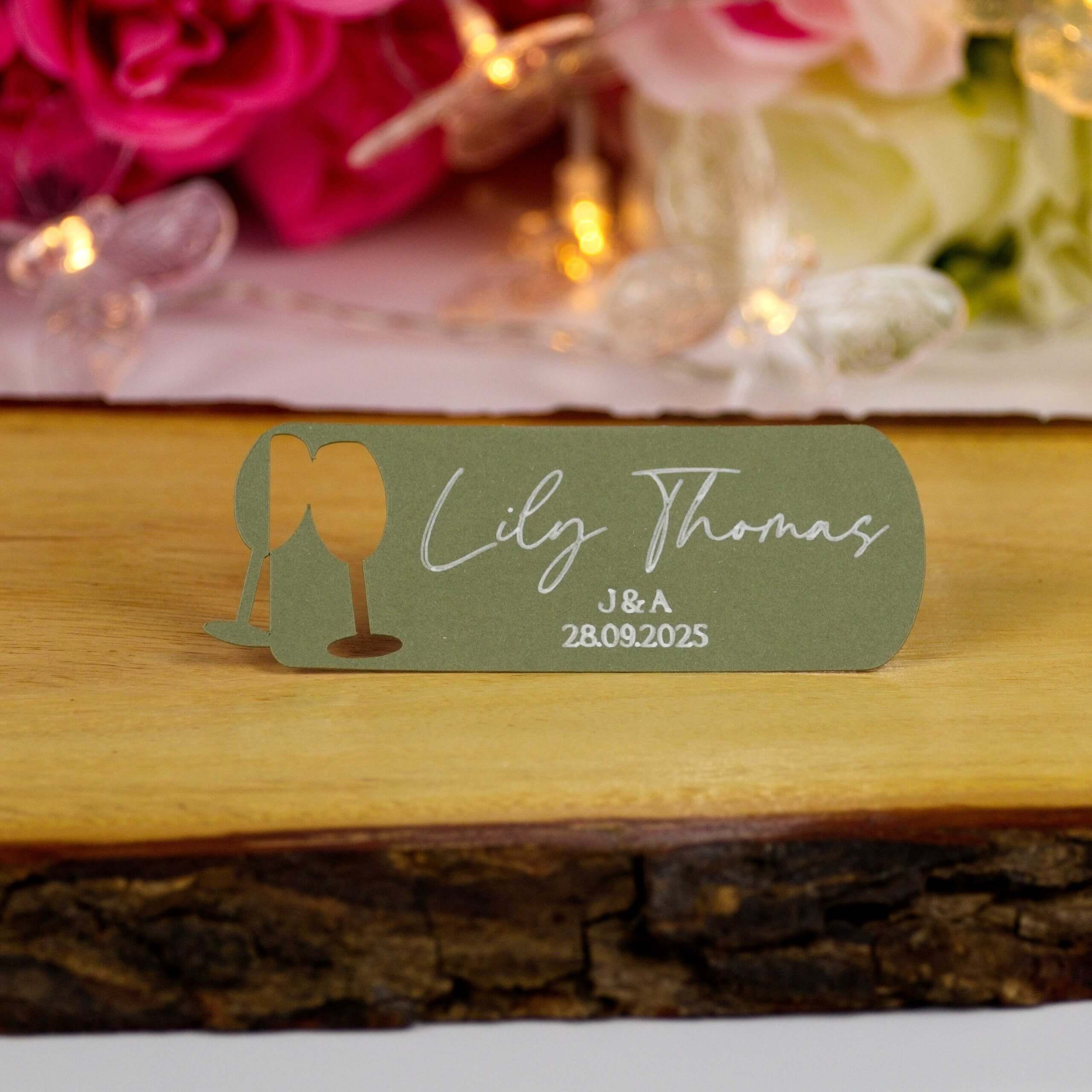 - Elegant Guest Names: Guest names are written by a precision pen-writing machine that creates a warm handwritten feel, enhancing the overall presentation.