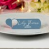 Add a romantic, personalised touch to your tables — the Sweetheart place card features a classic heart cut-out, machine-written guest names with a handwritten look, and the couple’s initials + date on every card. Perfect for wedding receptions, engagement parties or bridal showers and a lovely keepsake for guests.