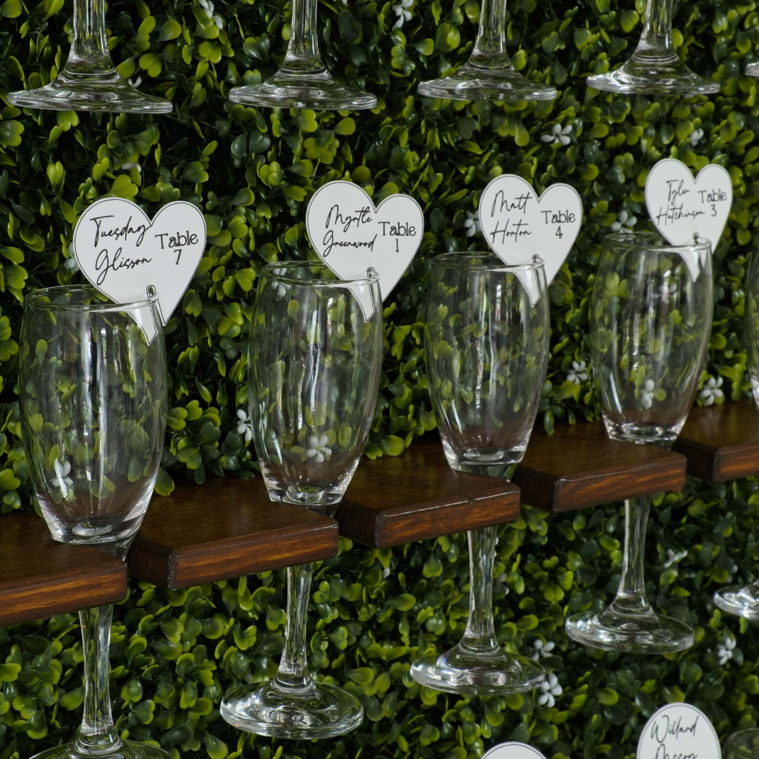 Enhance your event with our personalized drink tags for prosecco wall hire, doubling as a seating plan.