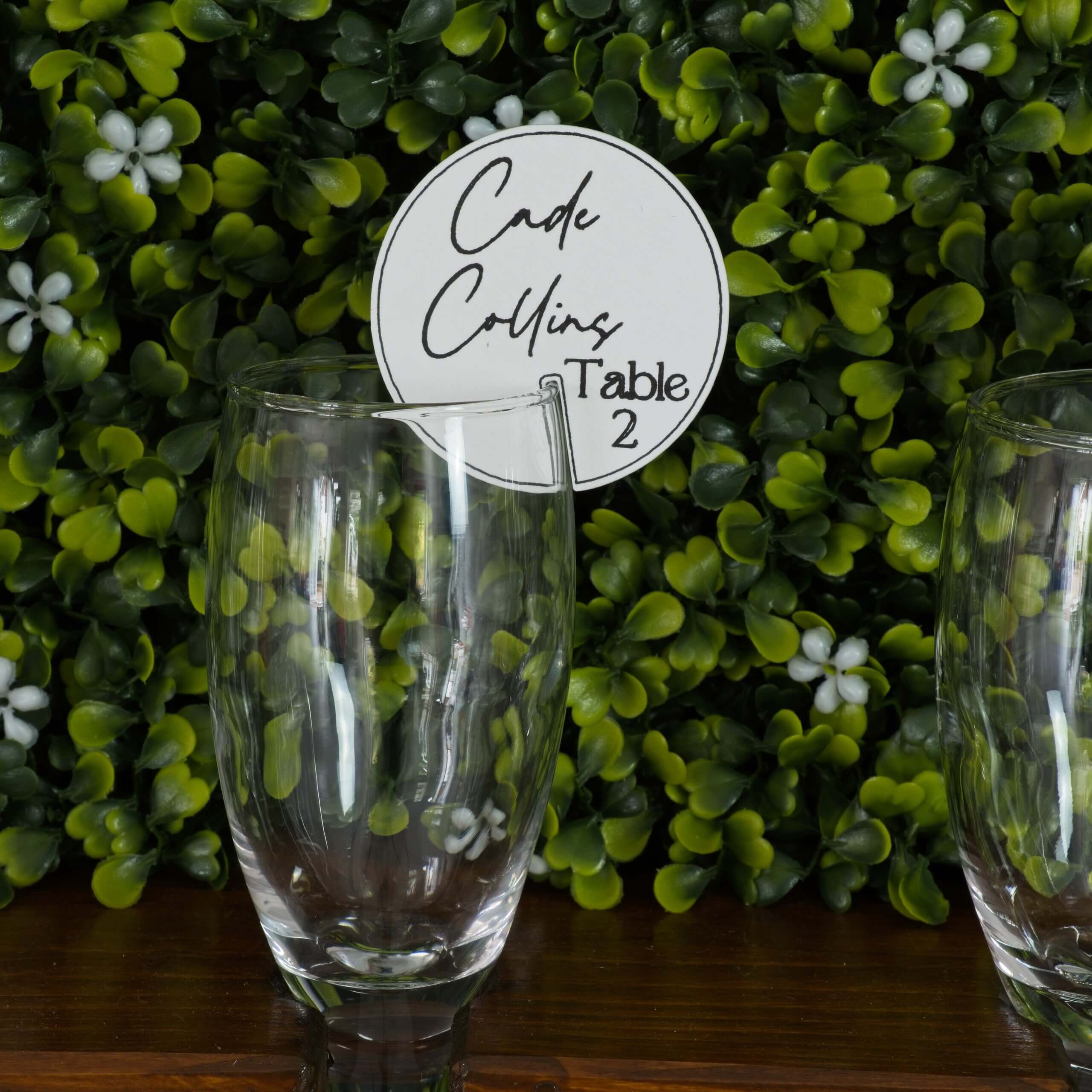 Welcome guests with a glass of bubbly adorned with a tag featuring their table number.