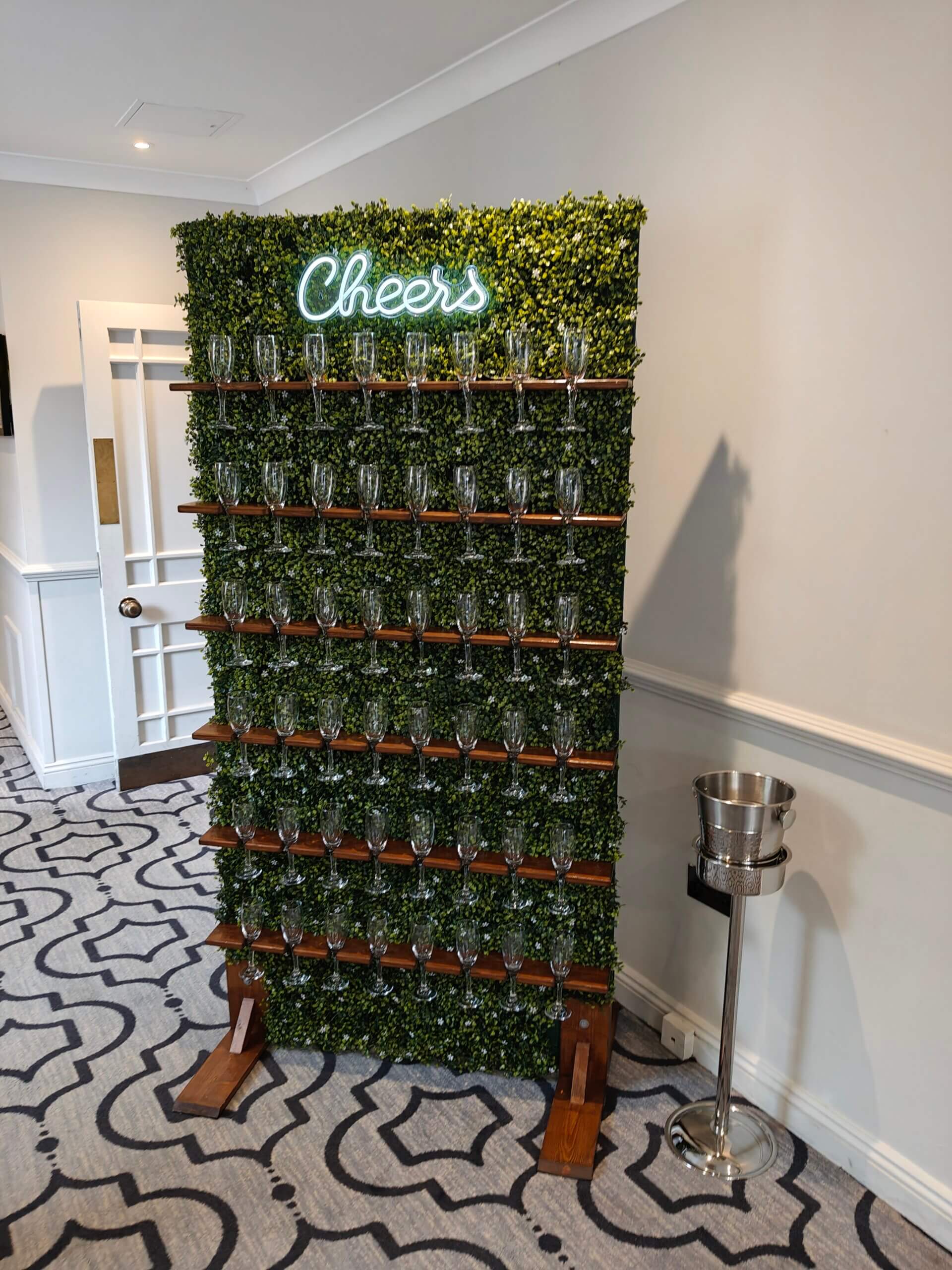 - Position the Prosecco Wall and Crisp Wall where staff can top up or guests can safely help themselves
