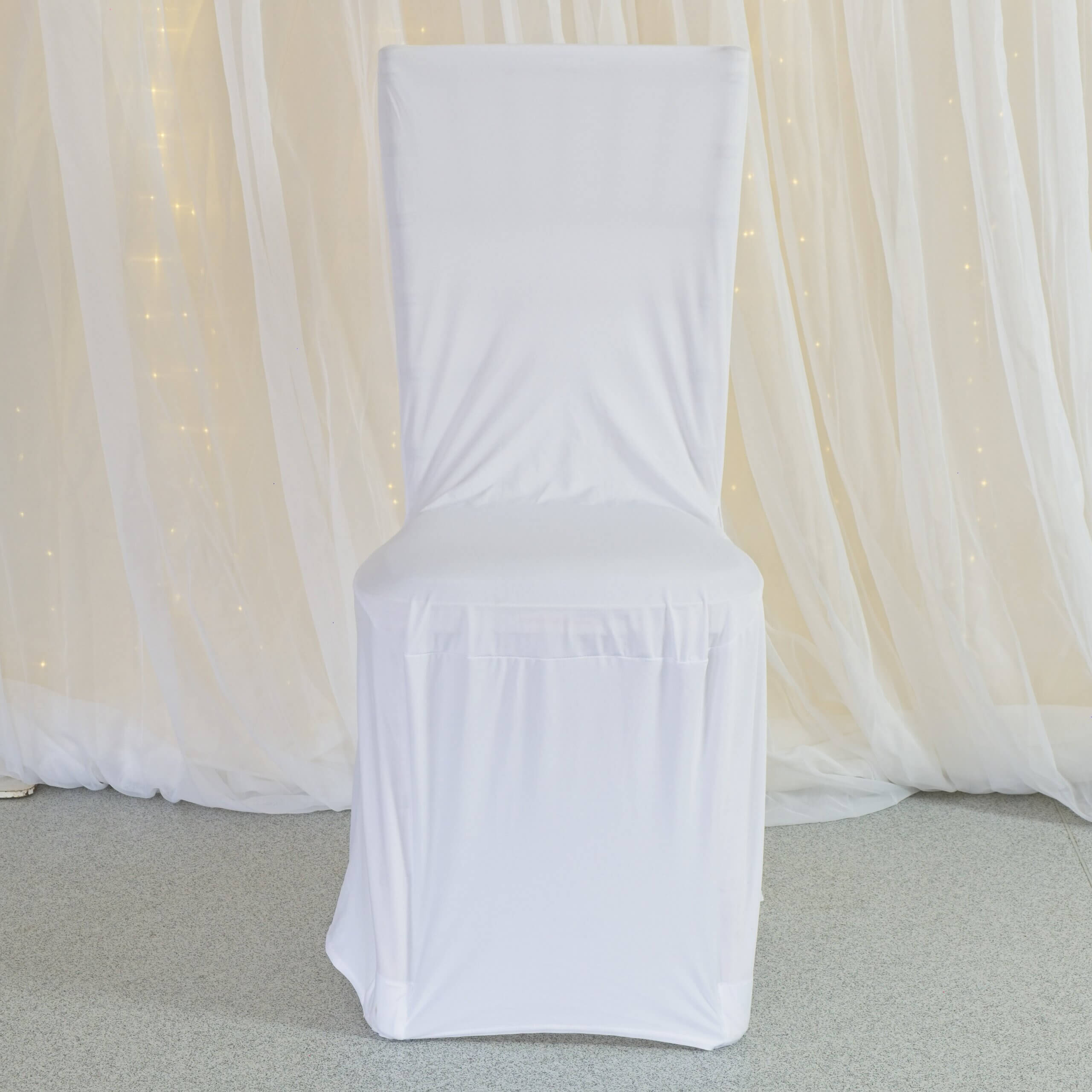 White Spandex Chair Cover Hire — Sleek stretch-fit covers